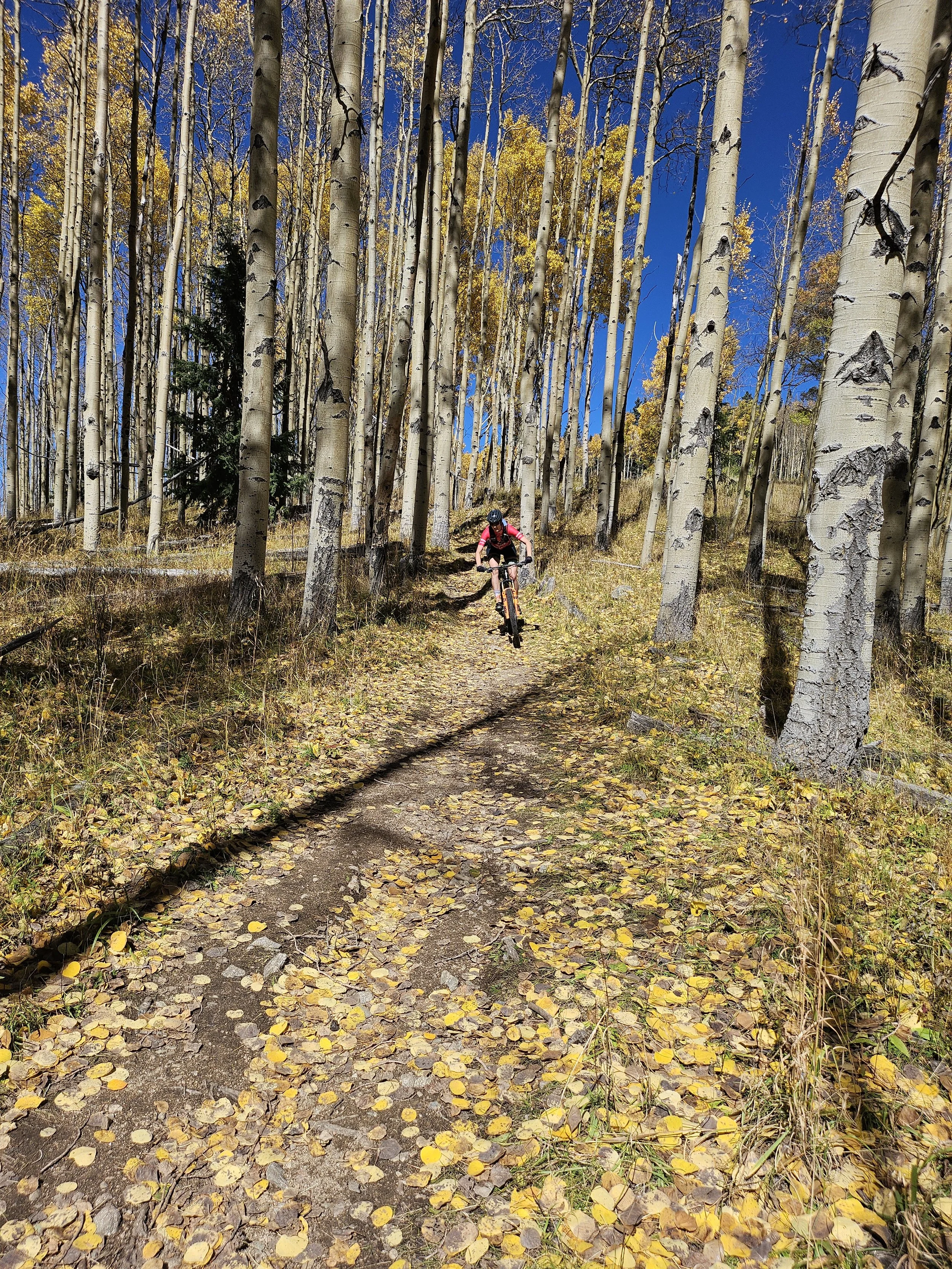 The day begins with a steady, scenic climb up 3 Bears, a trail known for its punchy rhythm and beautiful transitions from town into the higher forest. As you gain elevation, piñon and juniper give way to ponderosa stands and wide-open views of the surrounding mesas.