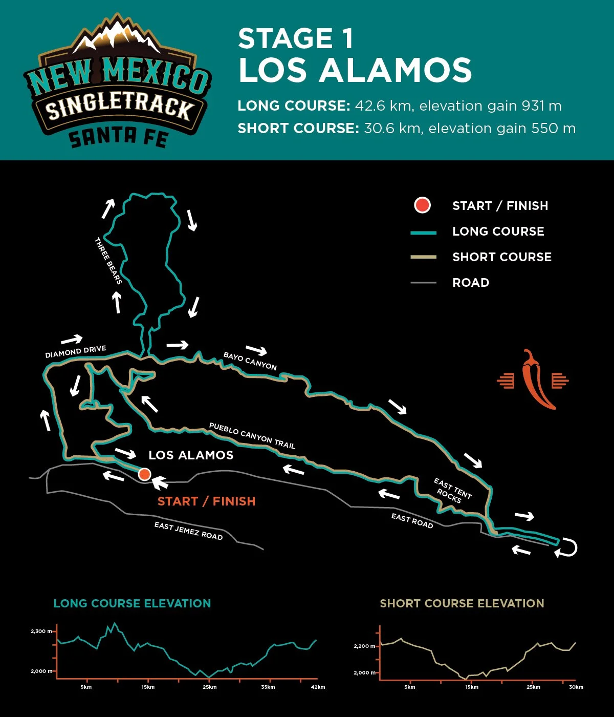 Stage 1 kicks off in the heart of Los Alamos, starting and finishing near the Manhattan Project National Historical Park — a uniquely iconic setting where history and high-desert riding intersect. From the first pedal stroke, riders will feel the energy of this landscape: volcanic mesas, deep canyons, and forested ridgelines shaped by millennia.